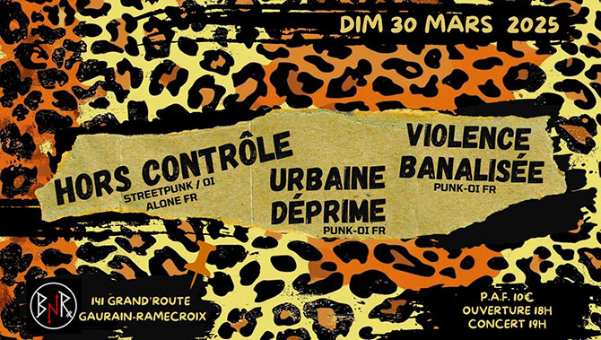 Accueil > Évènements en Belgique > Hors Contrôle + Urbaine Déprime + Violence Banalisée au BnR