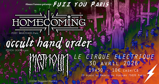 Accueil > Évènements en Ile-de-France > HOMECOMING + OCCULT HAND ORDER + MEJNOUN @ Cirque Électrique