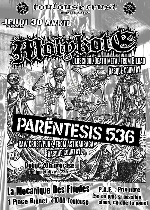 Accueil > Évènements en Midi-Pyrenees > MOLYKOTE oldschool Deathmetal et PARENTESIS 536 Crust Punk