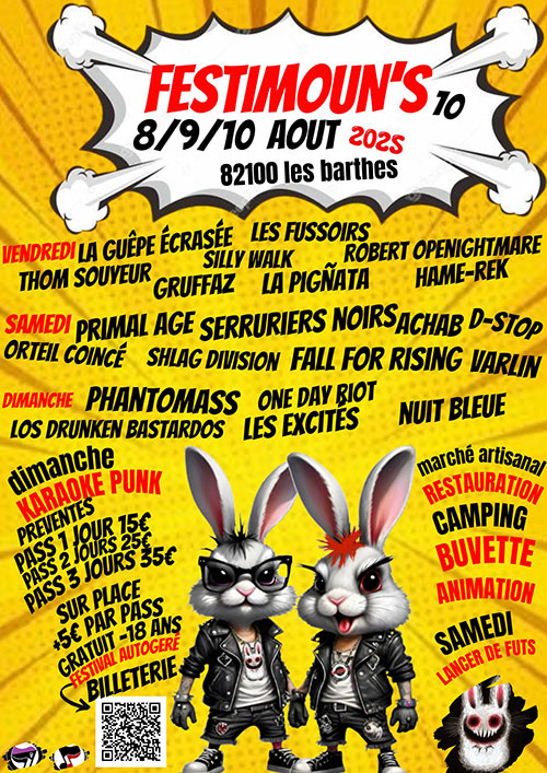 Mustach Garcias (Toulouse) Mustach Garcias débarque avec un live punk rock bien abrasif, moustache affûtée et énergie brute. Un show qui sent la guitare chaude et la...
