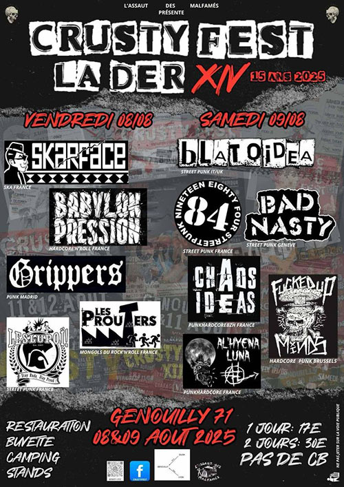 Druids of the Gué Charette (Dark Punk - Brocéliande) Kenavoï (Punk de comptoir - Saint-Péran) Red Fish Killer (Ska Punk - Rennes) Matheo (Punk solo) À partir de...