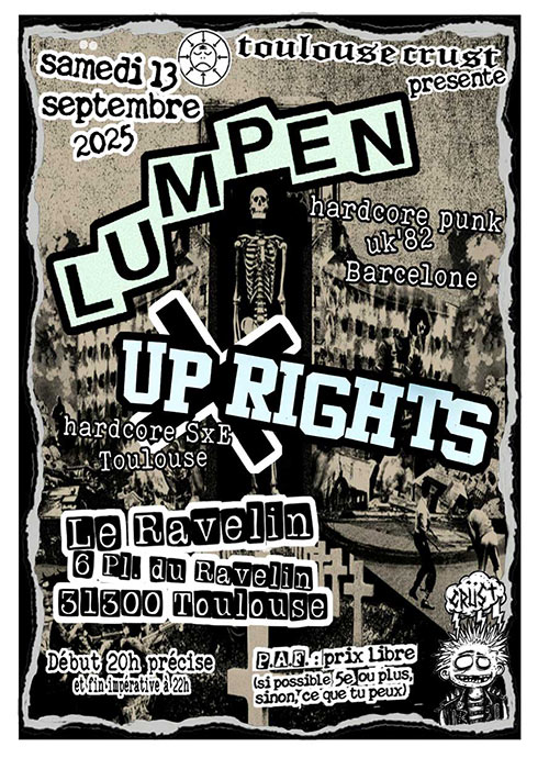 Toulouse Crust et Snakebite présentent : Jeudi 22 janvier 2026 Axis Musique 7 Impasse Boudeville 31100 Toulouse PAF : 15e Début des lives à 20h, fin à 23h. Ouverture...
