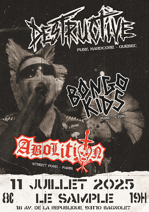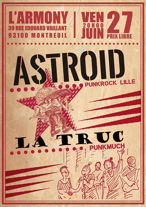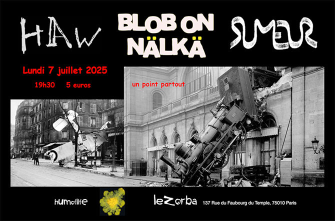 À la bicyclette, nouveau lieu qui accueille des concerts punks dans le centre commercial croix de chavaux, Joueront, à prix libre mais respectueux, _ Acid Gras _ The Blastomizers _...